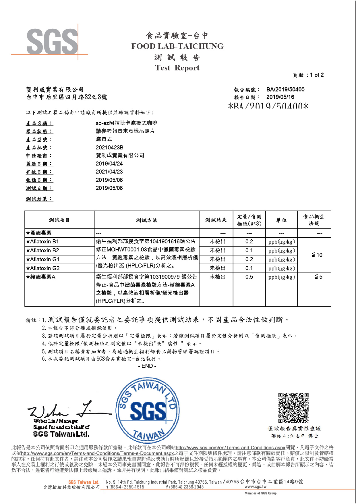 我們將so-ez濾掛咖啡送SGS檢驗,全數過關檢驗合格。